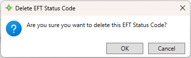 . - At the message "Are you sure you want to delete this EFT Status Code?", click