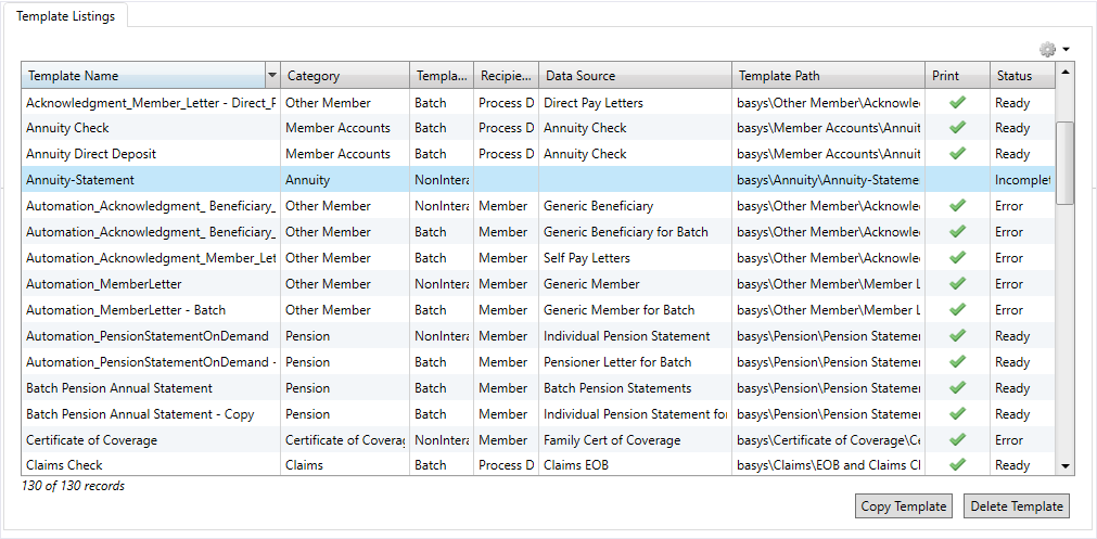 Copy a template configuration to select different correspondence types, ECM configuration, or printers. See Template setup and Configure a template for more information.