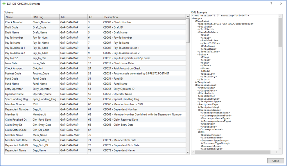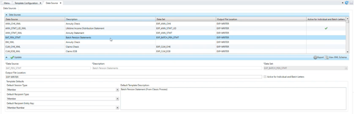The XML contains the data available for each template. If you have a document (letter, check, etc.) you can check the XML schema and see the data values available for that template. For example, let's say you have a disability letter and you expect to see a primary diagnosis code, you can look at the schema to see the fields available and then work with the template publisher to add or correct the template.
