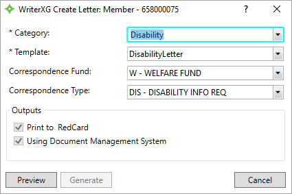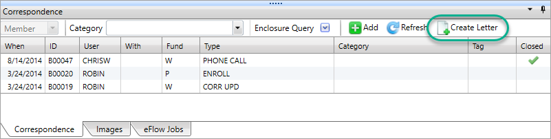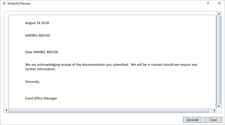 to close the WriterXG Create Letter window. - If you're using a document management center and the template was configured for a correspondence, go to the Correspondence pane and click
