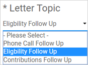 list displays options based on the letter and session. Select what you would like to display in the letter body. -
