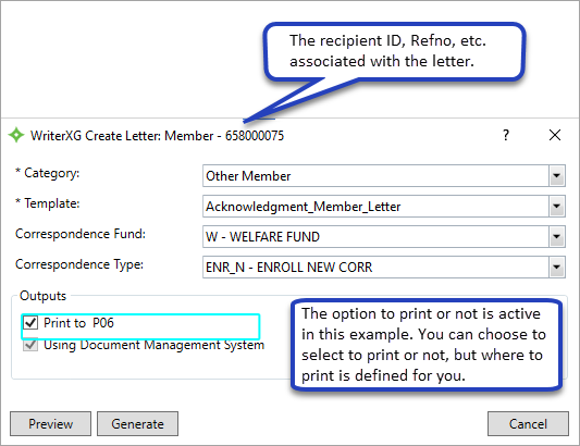 Next action options Preview button If this button is active, click it to display the letter preview in your browser. Generate button If this button is active, click it to generate the letter in PDF A file format designed to present documents the same way on different devices. Typically, PDFs are not editable. format. You won't be able to make any changes to the letter.